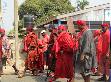 The protesters including some chiefs, who were mostly dressed in black and red attire, chanted slogans and sang songs that called for justice and an end to violence in the community.