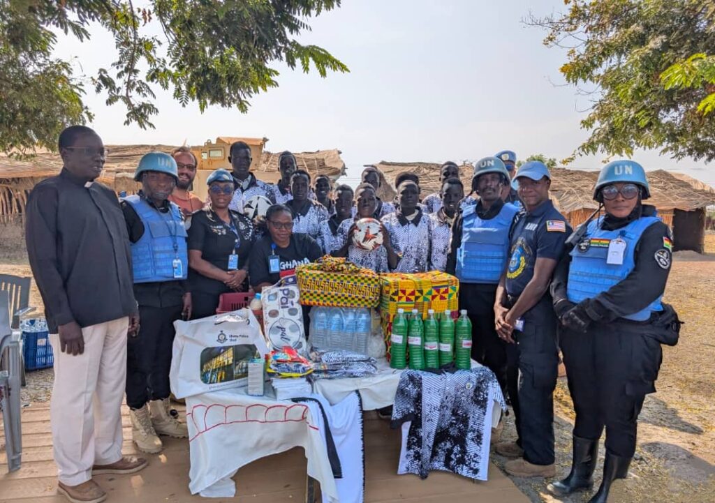 Chief Superintendent of Police Mrs Rosina Adwoa Donkor Gariba, Deputy Commanding Officer of Ghana’s Formed Police Unit, has donated assorted sports items to St. Martin Depories Catholic Church youth football team in Bentiu, South Sudan.