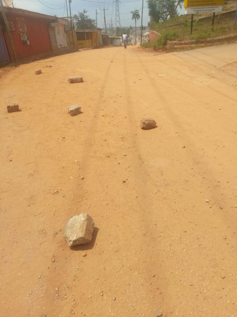 Madam Patricia Nsiah, a seamstress on the stretch had had to block a section of the road to avoid drivers using that portion of the road as dust control measure.
