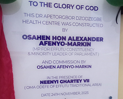 Mr Afenyo-Markin, also the Minority Leader, said the health centre was expected to improve healthcare outcomes for the people of Ateitu and its surrounding areas, providing quality healthcare services for generations to come.